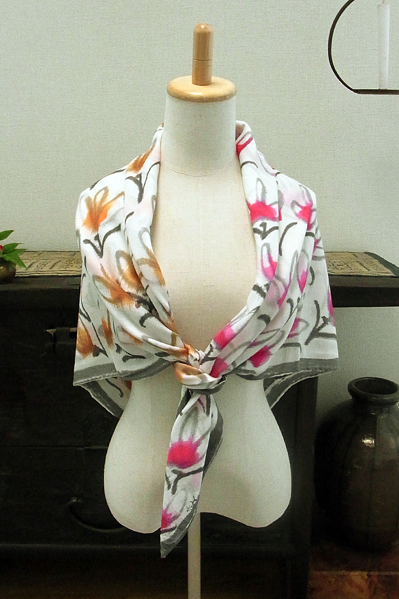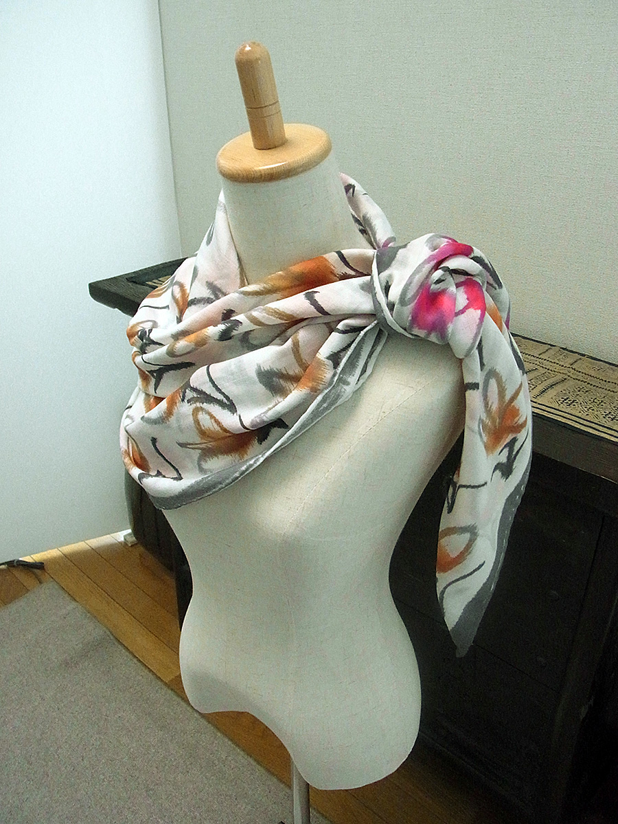 | 作品名 | ピンクと黄土色の花柄ストール |