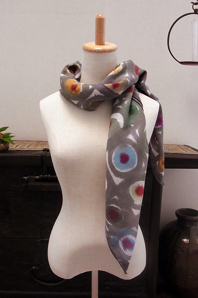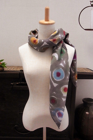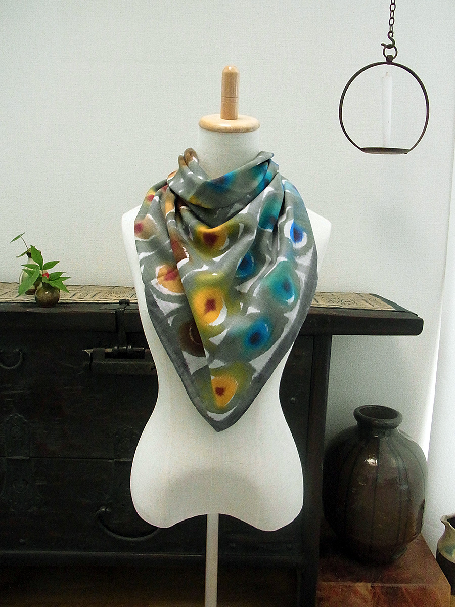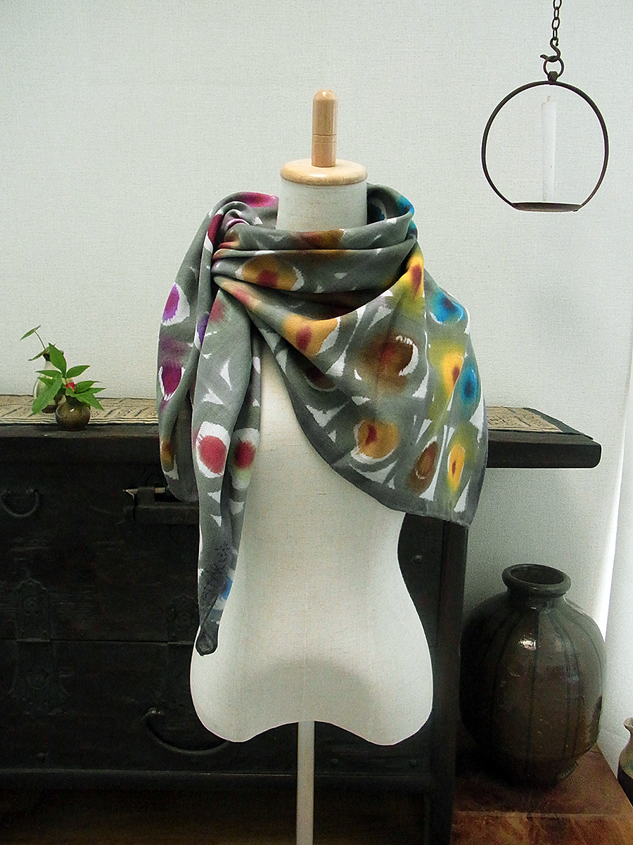 | 作品名 | オレンジと青と紫の水玉ストール |