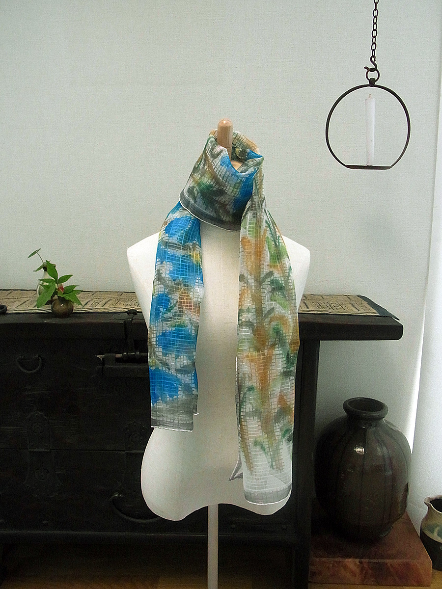 張りのあるシルク素材なので、ふんわりと肩にかけることができますよ。