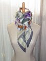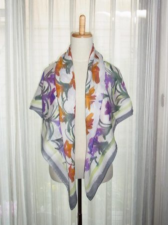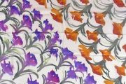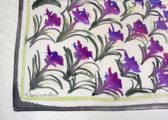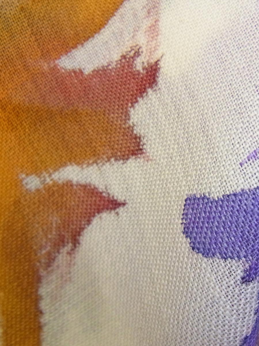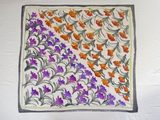 中心を境に紫色と黄土色の2色の花柄を描いてます。